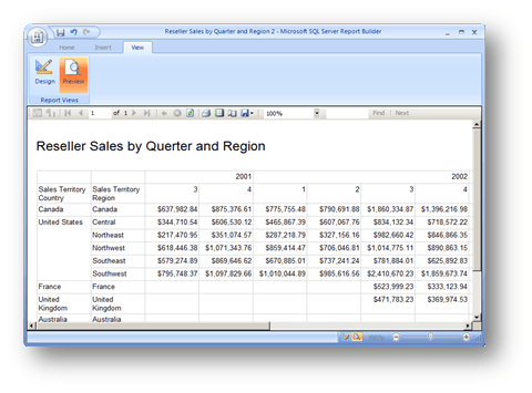 Designing a report in SQL Server Reporting Services can be easy of you use default styling elements. However, Reporting Services has little support for thematic styles and style sheets to coordinate colors among different design elements. Some day we may have the ability to use style sheets in Reporting Services but until then, you have to do some manual work to design a well-crafted report with consistent styling. I’ve seen many different techniques used to apply style sheet-like themes via information stored in database tables and property expressions. In my opinion, this is a lot of work that may save time and energy on large-scale projects but may be overkill in most cases. My approach is a simple custom function that allows you return different shades of a single color to different report elements and properties in a report. The following code can be stored in a report definition, to be used as a template for new reports; or in a custom .NET assembly referenced by all the reports in a business solution. As an external assembly, the code may be written in C# but as an embedded function, it must be VB.NET, as shown in the example (line continuations are used to format code for the printed page).