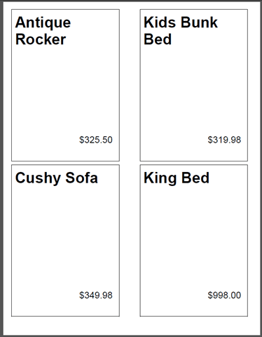 A reader recently asked for some help creating a “4-up” sheet of labels. She referred to one of the recipes on page 383 in our Wrox Press book Microsoft SQL Server Reporting Services Recipes for Designing Expert Reports, about creating mailing labels. The technique in the recipe used the multiple column feature of SSRS. This made me give this a little more thought and I’ve come up with another way to get to the same result, possibly with a better outcome. These techniques could be applied to different “Avery Style” full sheet card and label layouts that have any number of columns and rows.