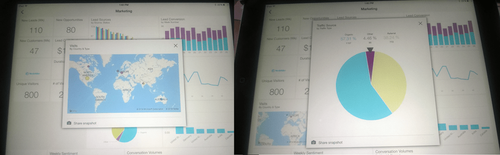 The iOS app for iPad is now in the Apple Store and is also currently free. It allows users to view and interact with published dashboards in a native app on their iPad. An iPhone version of the app will soon be available. This app is similar to, but not quite the same thing as, Power View; it’s more of a dashboard view-only app with touch-friendly interactions. For Power View users, it will be familiar and it’s very intuitive and easy to use. This is another big step forward for Microsoft BI. These are some camera shots on my iPad. Even if you don’t have your own data and models to browse, the included samples are great. Check-out the details here and then go to the iTunes or App Store and search for Power BI to install it yourself.