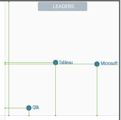 In the BI world, when measuring anything, we talk about granularity, scale and margin of error. When making comparisons, it’s really hard to be perfectly accurate. But, I suppose we could say the same thing about the results of an Olympic race event and if one competitor wins by one-one-hundredth of a second then they are, in fact, the winner. As an experiment, I thought I’d take the top three vendors and visualize the rankings a little differently. Now, please be mindful that my method is not entirely scientific because I don’t have the source data. I simply measured the number of pixels on the Magic Quadrant chart and compared the center position of each bubble.