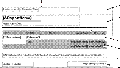 You have a lot of flexibility when displaying header and footer content. In addition to the standard report and page headers and footers, data region sections can be repeated on each page, creating additional page header and footer content. Figure 7-4 shows a table report with each of the header and footer areas labeled.