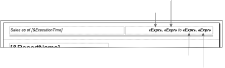 Next, I drop the Execution Time field/object just to the right of the existing text to create a composite message: Sales as of: [Execution Time]. Just peachy.
