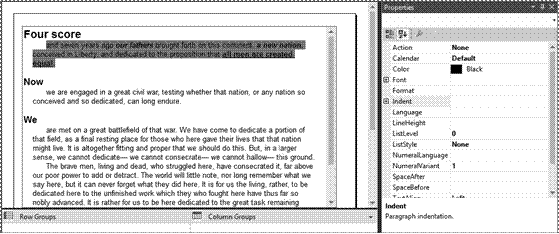 TIP Remember that any property displayed on a property page dialog like this is also available in the Properties window, to the right of the report designer