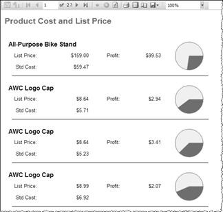 Note that regardless of the dimensions of a subreport at design time, when dropped into a contain- ing report, it always appears as a square area that usually takes up more design space than neces- sary (which also expands the dimensions of its container). After resizing the subreport, I also had to resize the list to appear as it does in Figure 7-33.