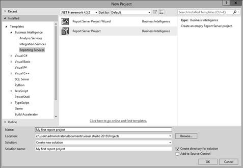 5. Within the project templates list in the middle of the dialog, select Report Server Project.