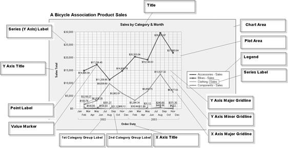 Reporting Services provides about 60 different chart styles, if you count all the variations. For each, you have fine control of detailed properties used to control border styles, fills, colors, and sizes of