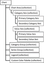Chart objects are organized into the hierarchy shown in Figure 8-12. Understanding this structure and the relationships between these objects will save you a lot of time and effort.