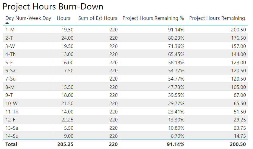 Project Hours Burn-Down Chart