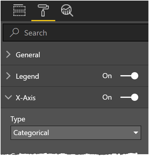 This style of chart is very similar but the key differences are that the columns are ordered by the contribution value in descending order.   You can see that my sample dataset just uses numbers for the categories (e.g. “8”, “2”, “4”, etc.) but these could just as easily be names of resources, sales people, customers or products.  The columns are in descending order of aggregate value rather a time series of the axis field value.  To order by measure or value (my aggregate field is literally called “Value”), set the Type property for the X-axis to “Categorical”.