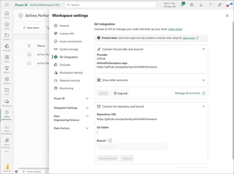 If you plan to graduate to fully supported DevOps and CI/CD features, I recommend that you use either GitHub or Azure DevOps because these two options are supported by Fabric workspace Git integration. If you have access to Azure DevOps, setting up a project and implementing version control is a fairly simple task, and this provides all the features of DevOps project management, ticketing, task assignments and release control. If you don’t work with Azure DevOps or want to share your code publicly, GitHub is free for public use and easy to get started.