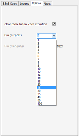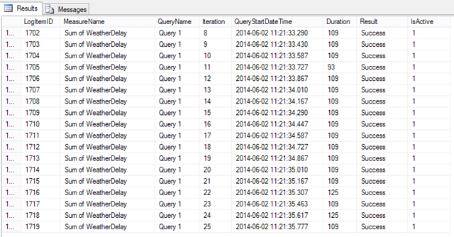 Every query execution is logged for later analysis.  Here is a view of the logItem table in the SSASPerformanceTest database: